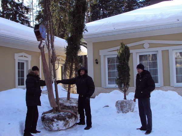 Посадка крупномеров (больших деревьев)
